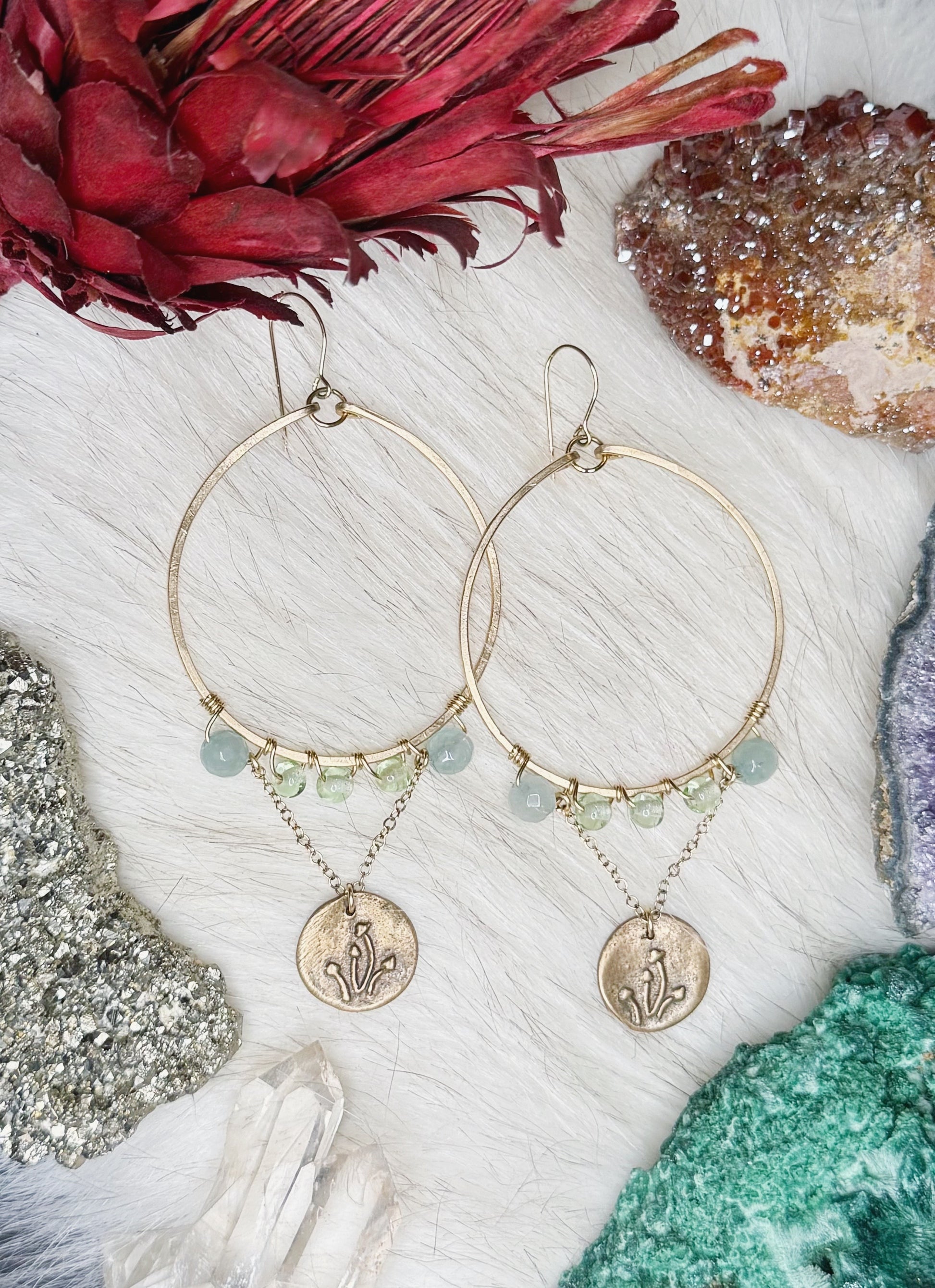 A one of a kind pair inspired by nature and handcrafted with passion. The Bronze pendant design is hand drawn and formed by creator, Moen Tesoro. You will feel comfortable knowing these earrings will not change color as they are made of 14kt Gold Filled wire. These simplistic Bohemian Hoops can be paired with any outfit for all occasions! It is the perfect set to add to your unique jewelry collection.