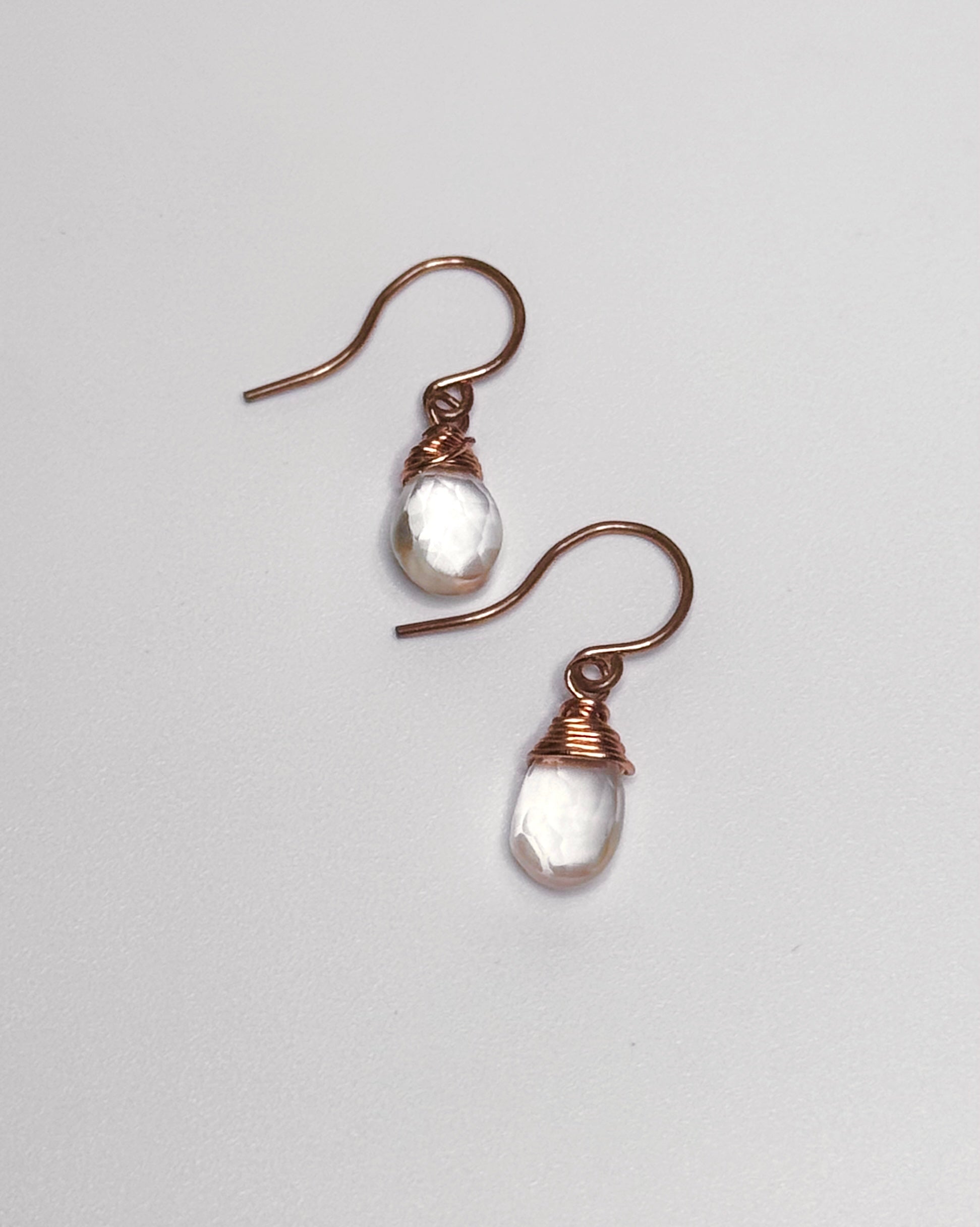 Complete your look with these precious Rose Quartz earrings wire wrapped in copper.
