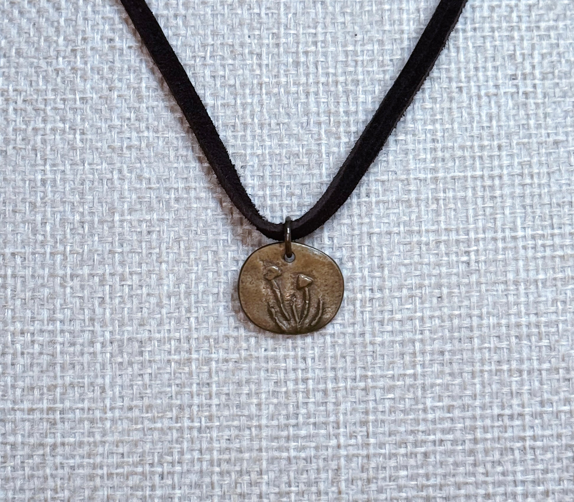 The mushroom pendant is made of bronze and the design is hand drawn by creator, Moen Tesoro.