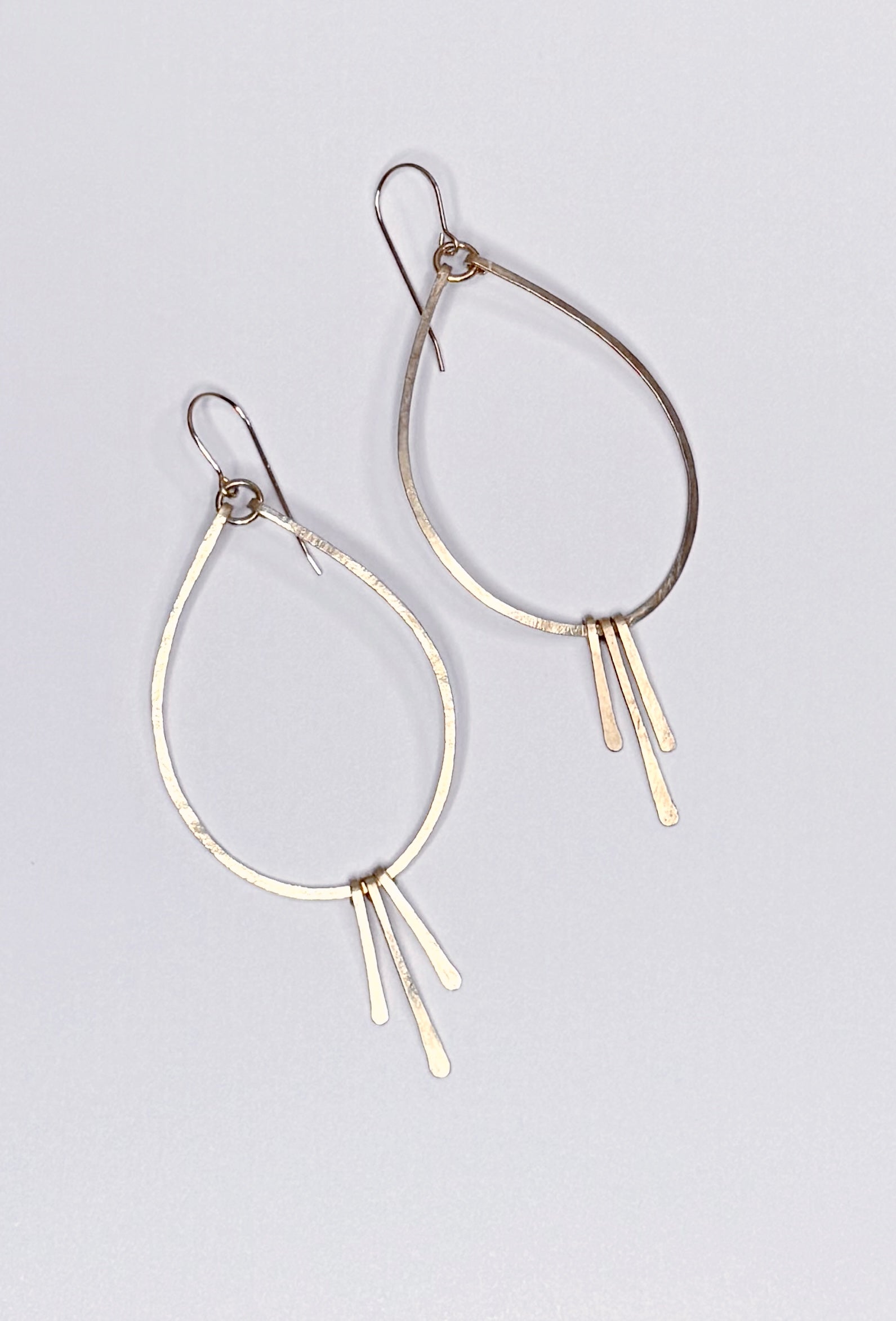 All hoops are shaped, hammered and formed by hand. The entire earring is made of 14kt Gold Filled wire and will not lose its color.